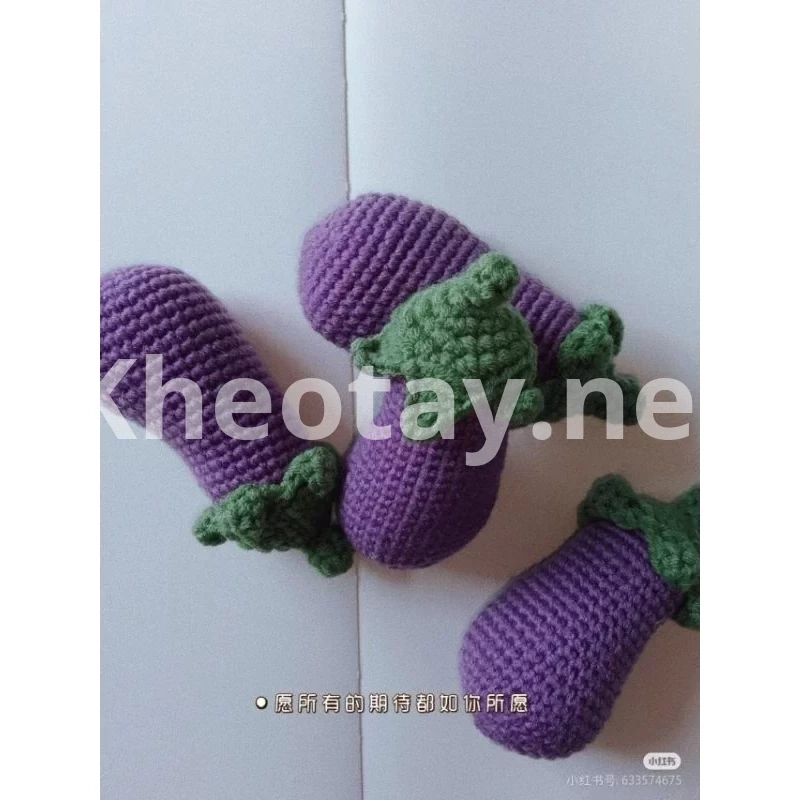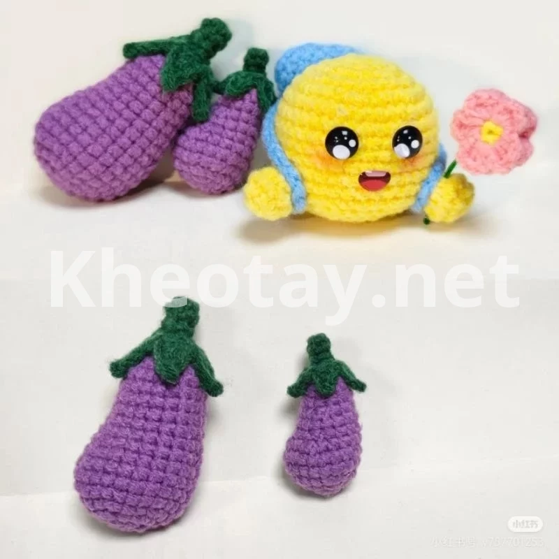 - Thiết kế: Trái cà tím tròn ú, màu tím và cuống xanh nổi bật.