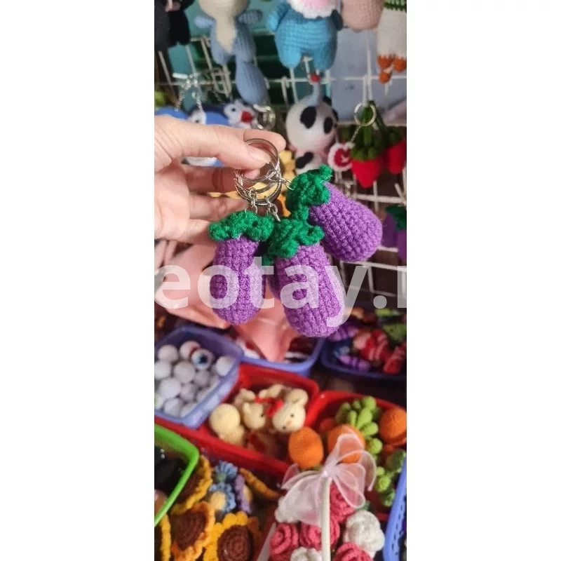 Thêm sắc tím đáng yêu vào bộ sưu tập phụ kiện của bạn với móc khóa cà tím bằng len được đan móc thủ công. Hình dáng tròn ú, màu sắc tươi sáng, thích hợp cho những ai yêu thích rau củ quả hoặc muốn tìm một món quà độc đáo.