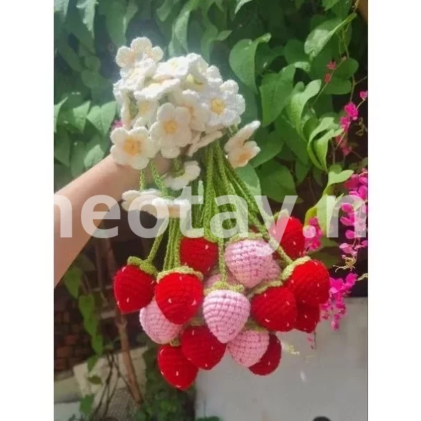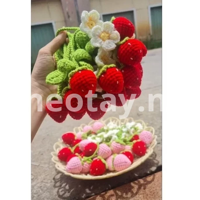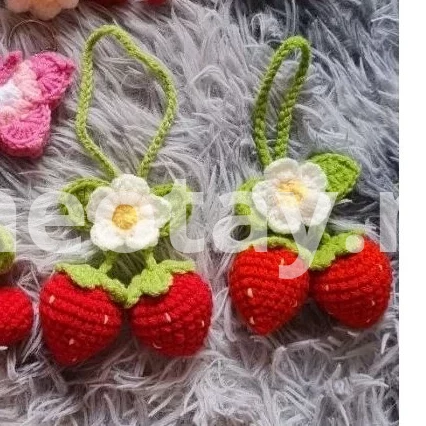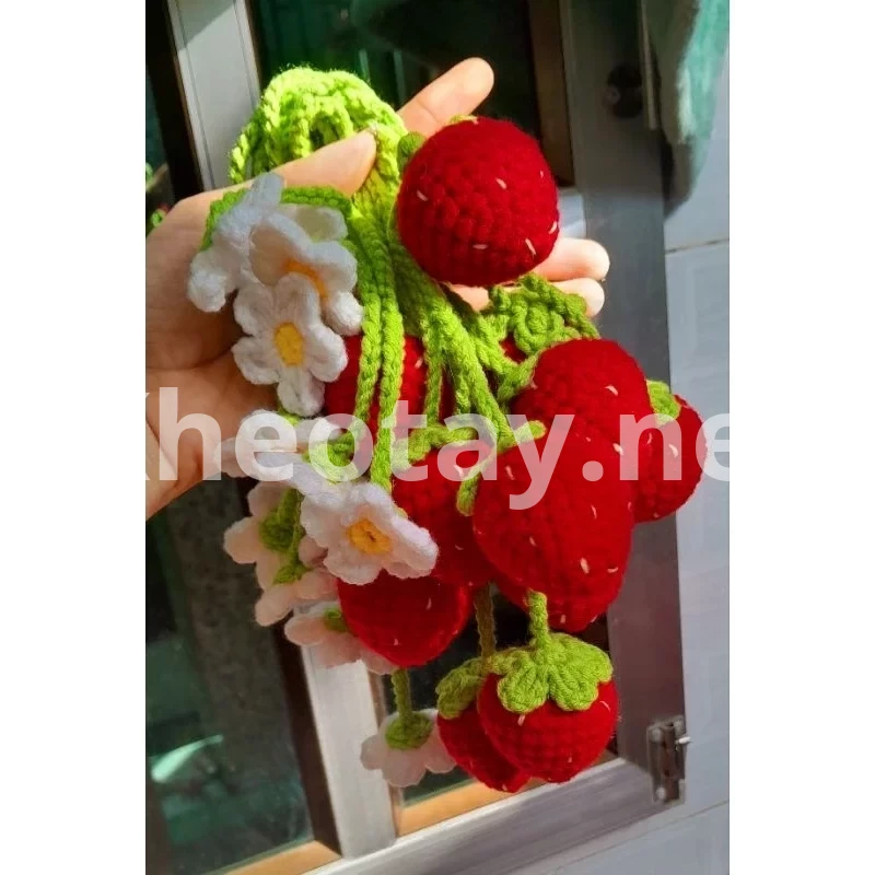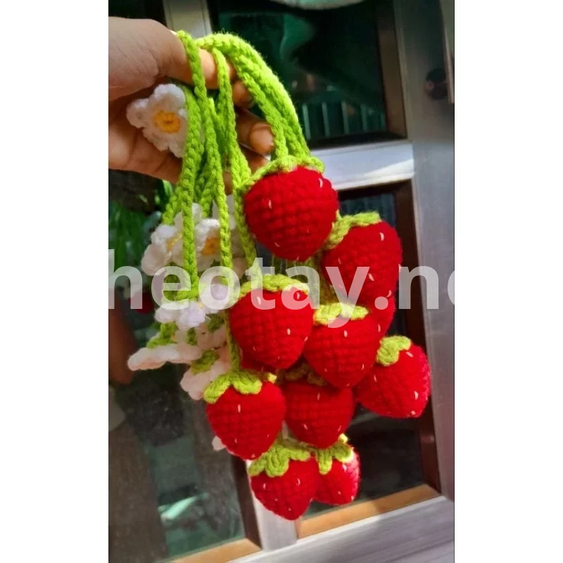 Mang đến sự tươi mới và đáng yêu cho cuộc sống hàng ngày với móc khóa dâu tây bằng len được đan móc thủ công tỉ mỉ. Sản phẩm nhỏ gọn, dễ thương, phù hợp để treo trên chìa khóa, túi xách, hoặc xe hơi.
